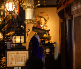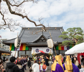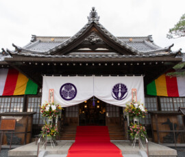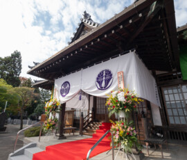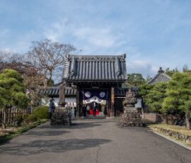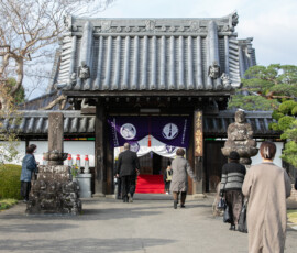 本尊は、阿弥陀如来です。大鶴山昌繁寺(浄土宗)は慶長6年、仙台城下の本材木町(もとざいもくちょう)に念仏堂を建立したのが始まりで、寛永13(1636)年に青葉区新坂町(にいざかまち)の現在地を拝領し移転しました。幾度か火災に遭い再建されましたが、江戸時代後期の建築といわれる山門と仙台三十三観音第五番札所である観音堂は、仙台市登録有形文化財となっています。